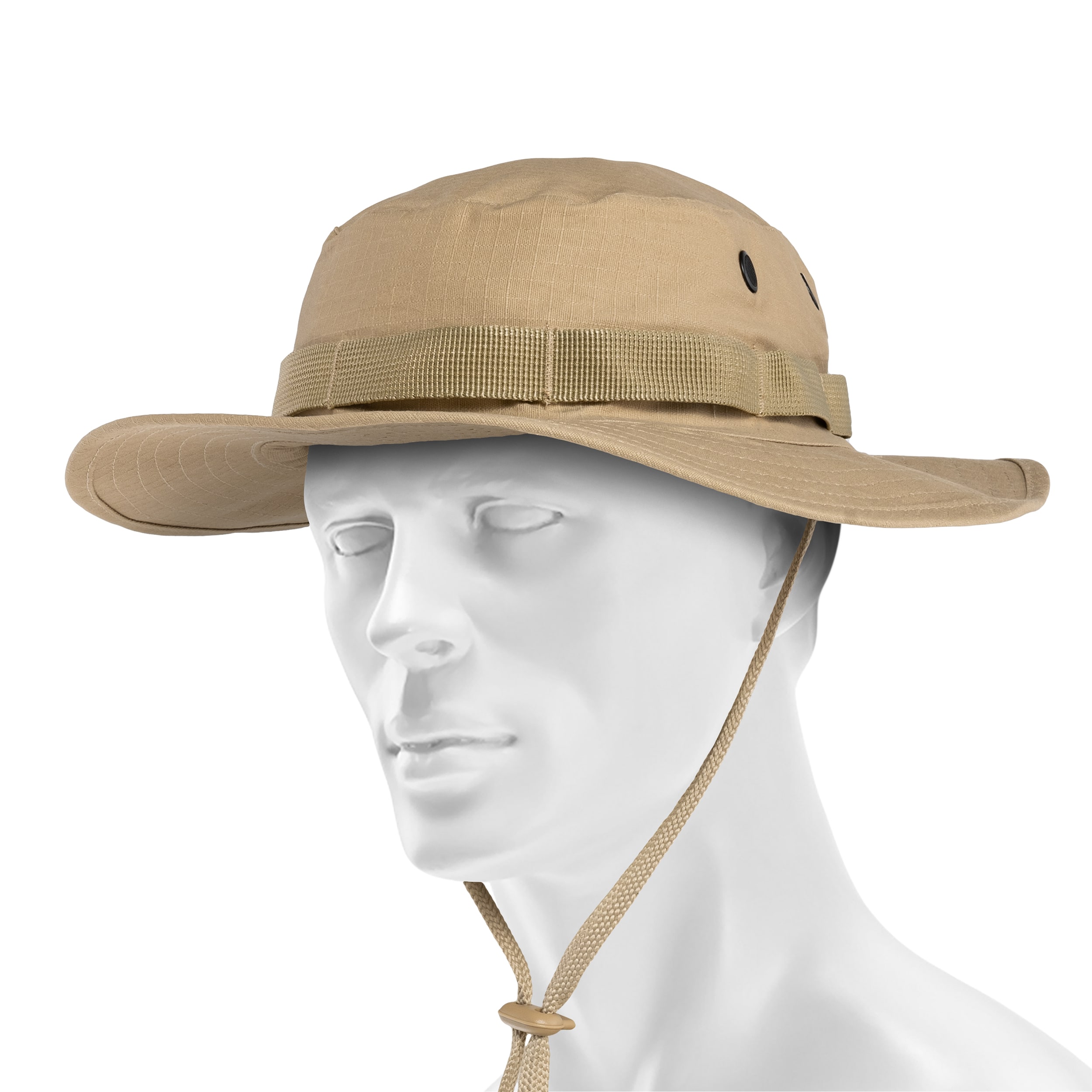The hats offered at MILITARY.EU are made of materials such as cotton, which has good air permeability. This prevents the accumulation of moisture, which can promote the growth of bacteria. For added durability, the hats are sewn in rip-stop cut, which prevents rips and abrasions. Hiking hats are characterized by the use of wide brims, which protect the head from the sun's rays and rain. In selected models of hats, the brims can be folded up with snaps. We also offer military hats with a mosquito net to protect against insects, which is especially useful in summer. Models without a mosquito net usually have mesh vents to prevent insects from entering. The range also includes hats equipped with adjustable strings, which allow for a better fit on the head and prevent the hat from slipping off even in strong winds. Select models of hats are equipped with a neck guard to protect the neck from the sun.