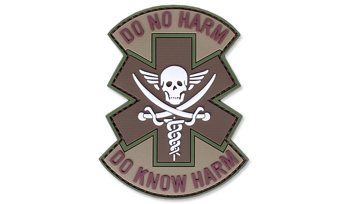 Medical morale patches are patches for medical personnel whose purpose is to raise morale. Such patches may contain humorous slogans or graphics to help the soldier maintain a positive mindset during difficult times. Medical morale patches often have both a motivational and identification function.