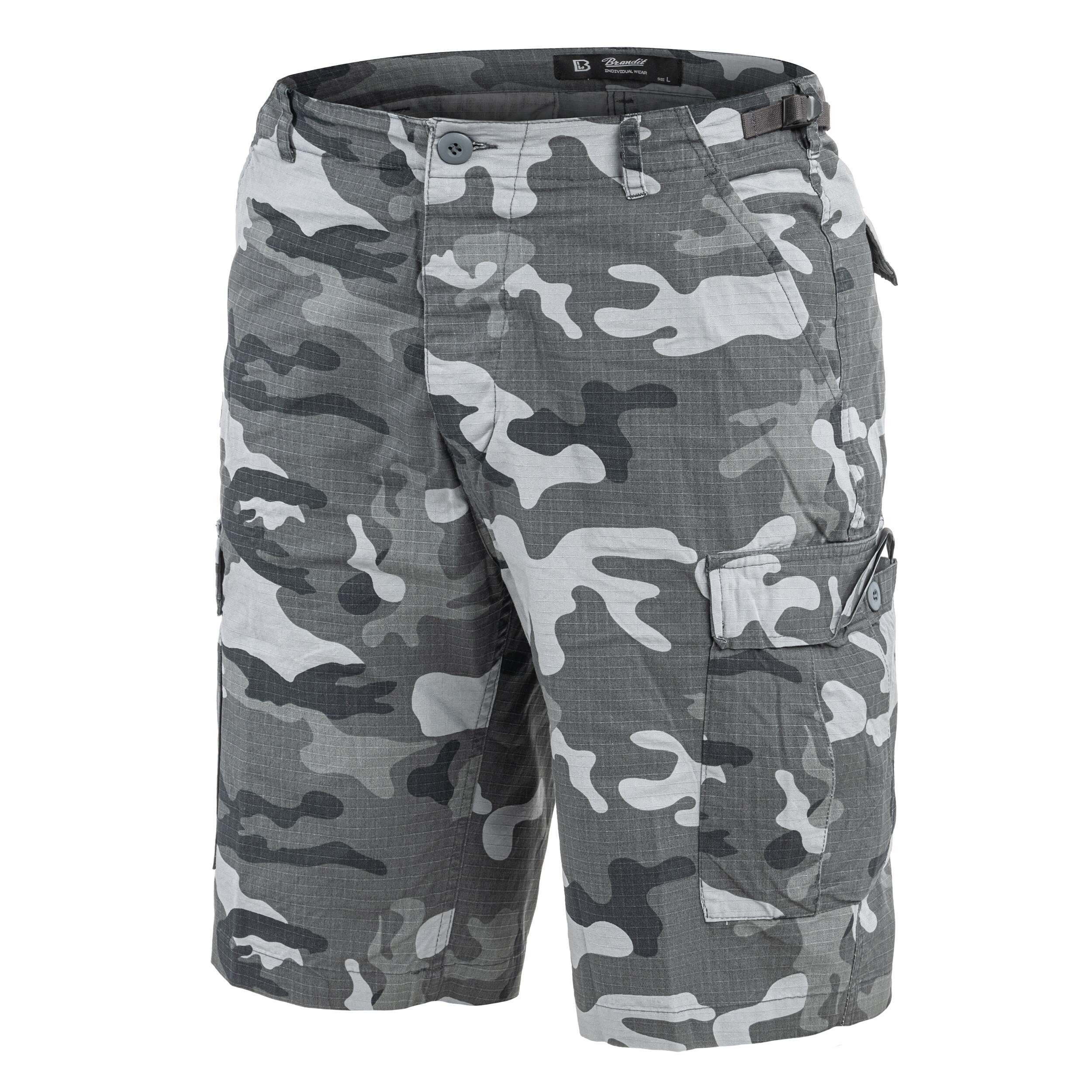 Šortky Brandit jsou vyrobeny z vysoce kvalitní bavlny, která jim zajišťuje vysokou odolnost a lehkost. Střih šortek i použité materiály umožňují neomezenou činnost a plnou volnost pohybu. Navíc na místech více vystavených poškození nebo oděru byla použita speciální zesílení. Pánské šortky Brandit jsou vybaveny 6 kapsami. První dvě jsou umístěny klasicky vpředu, což umožňuje rychlý přístup k věcem v nich uloženým. Pár dvou bočních kapes je větší, což umožňuje umístění větších předmětů, a k zajištění proti ztrátě věcí v nich slouží látkové klopy na knoflíky nebo suché zipy. Na zadní straně šortek jsou umístěny dvě kapsy, které stejně jako boční, jsou také vybaveny uzávěrem. V šortkách Brandit byly použity široké nohavice, které neomezují pohyb a skvěle fungují při vysokých teplotách, umožňujíce ventilaci. Pro přizpůsobení šortek postavě je vhodné využít stahovací pásky umístěné v pase a na konci nohavic.