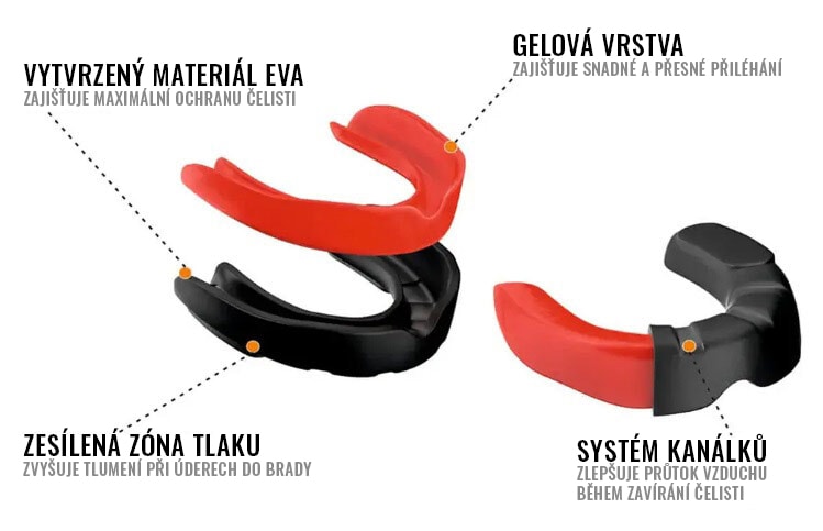 Vyrobený z materiálu EVA a gelu v technologii GelTech, vyznačuje se použitím dvou ochranných vrstev: vnitřní pro flexibilitu při formování, vnější pro maximální ochranu čelisti. Dále zesílená kompresní zóna zesiluje odpružení během úderů, když dolní čelist uhodí o horní.
