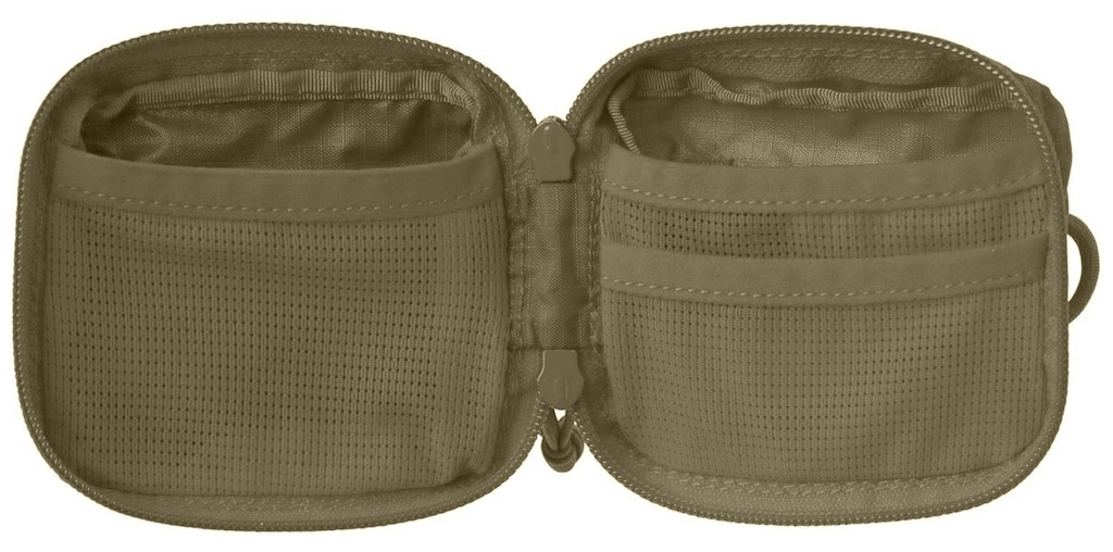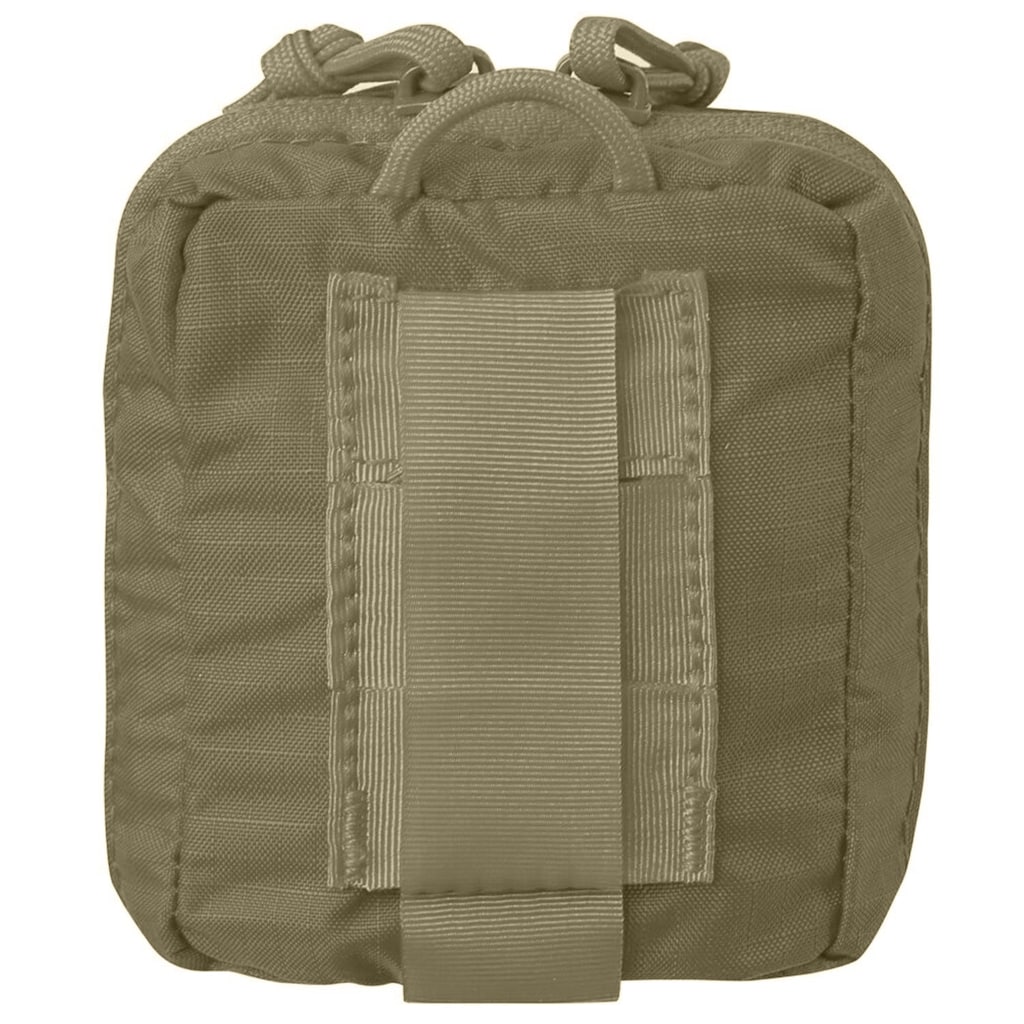 Lékárnička je ušitá z tenkých materiálů, což ji činí výjimečně lehkou – i po vložení obvazů její hmotnost prakticky necítíte, proto je skvělá jako EDC. Díky paracordové smyčce ji lze snadno upevnit na karabinu. MOLLE páska je měkká a tenká, ale svou funkci splňuje stejně dobře jako tradiční, tuhé pásky. I přes malé rozměry se dovnitř vejde spousta věcí – na rozdíl od Helikon Micro Med Kitu sem bez problémů vložíte svinutý obvaz i malou lahvičku dezinfekce. Vnější elastická kapsa je ideální na rukavice.