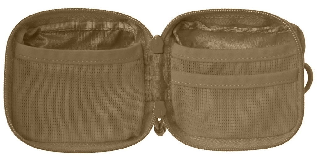 Obsahuje dva vnitřní síťované kapsy a jednu vnější, vyrobenou z elastického materiálu, což umožňuje rychlý přístup k nejpotřebnějším věcem. EDC Med Kit je uzavřen na pevný zip YKK.