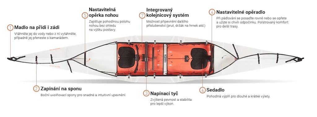 Otevřený kokpit nabízí dostatek místa pro další vybavení, jako je turistická lednička nebo rybářské náčiní. Taková konstrukce usnadňuje vstup a výstup. Kajak je velmi stabilní a ostré hrany zaručují skvělou manévrovatelnost a rychlost.
