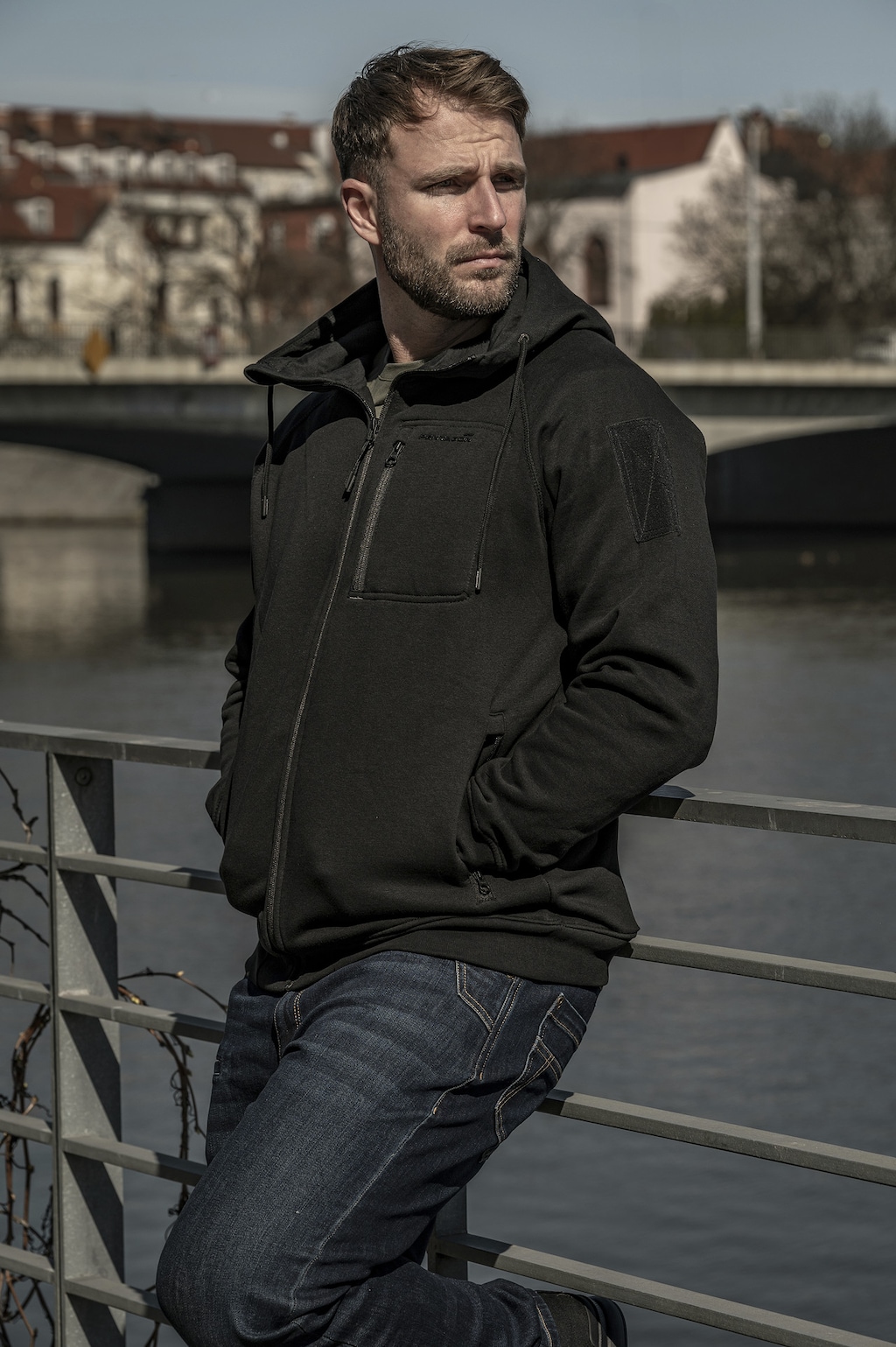 Na rukávech, ve výšce ramen, jsou umístěny velcro panely (suché zipy), které umožňují připevnění vybraných emblémů – jako je vlajka, označení jednotky nebo tzv. Morale Patches. Toto řešení umožňuje personalizaci mikiny a dodání jí individuálního charakteru.