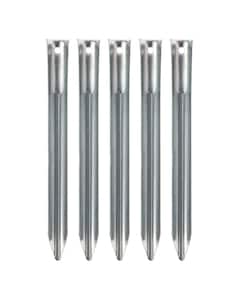 Zeltheringe sind das am häufigsten von den Herstellern hinzugefügte Element an Zelten. Das sind dünne Stangen, die man präzise in den Boden treiben kann, um das Zelt zu befestigen. Durch ihre Form lassen sie sich bequem und ohne großen Kraftaufwand an der gewünschten Stelle platzieren. Wir haben Zeltnägel aus Aluminium sowie Heringe und Heringe aus Metall. Zeltnägel aus Stahl zeichnen sich durch ihre größere Festigkeit und ihre Widerstandsfähigkeit gegen Verbiegungen aus, die auftreten können, wenn sie zu fest in den Boden gedrückt werden.