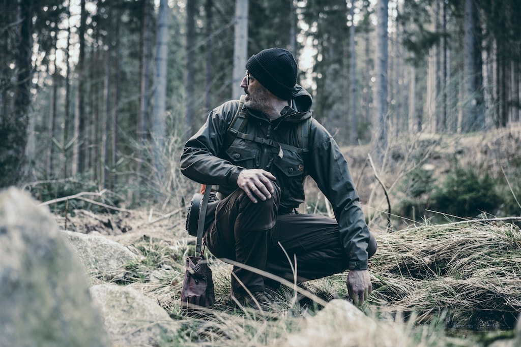 It is very robust, offers many practical pockets, and is comfortable to wear despite the sturdy material. The workmanship gives a high-quality impression, and the cut is functional for outdoor use. Fits me comfortably, feels durable. The cut could be more fitted at the waist.