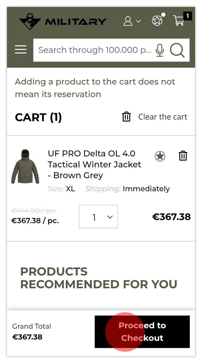 - Click on the cart icon and then on the PROCEED TO CHECKOUT button.