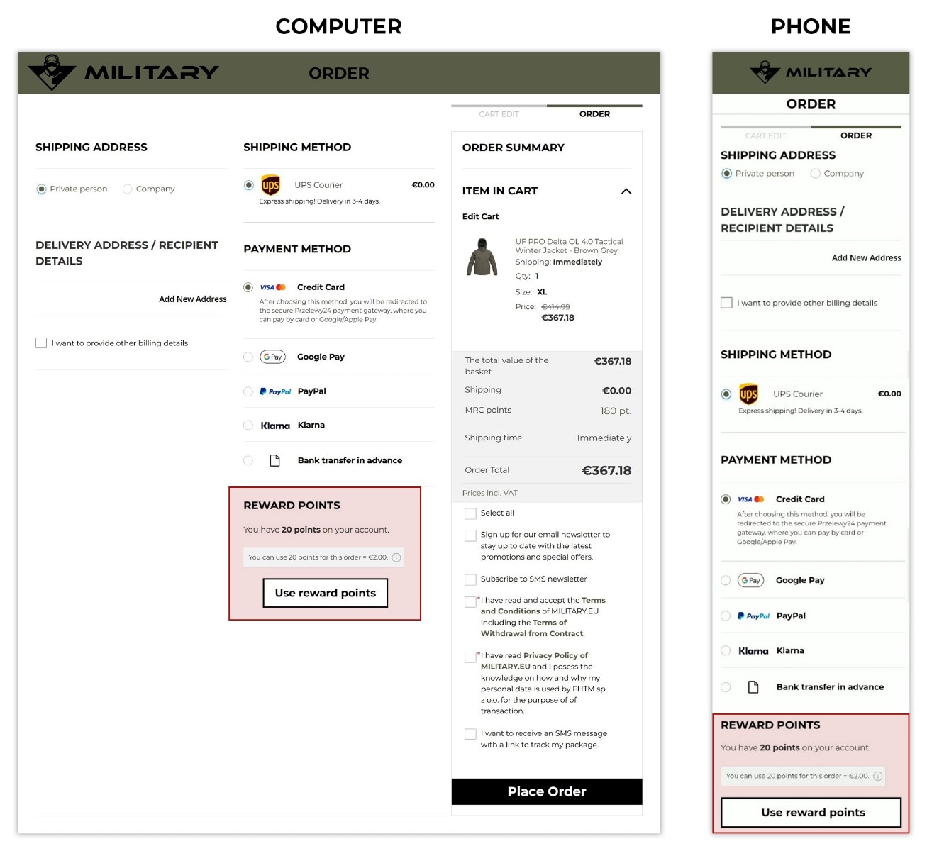 - To reduce the value of your order, click the USE MRC POINTS button. After clicking, the page will automatically refresh.
