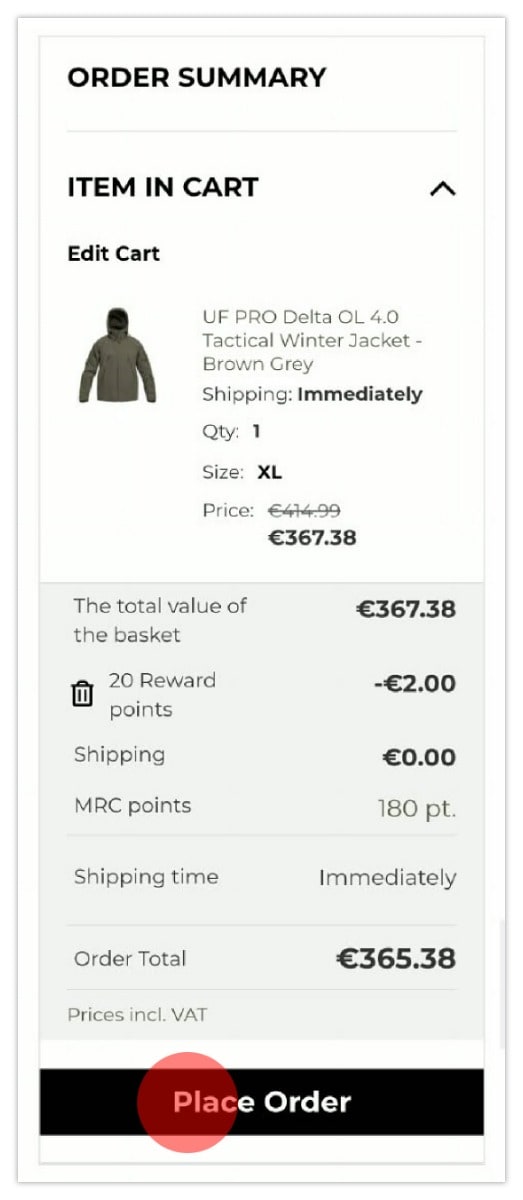 - You make a purchase - for every €10 you spend on an order, you will receive 5 MRC points. For example, for an order of €50, you will receive 25 MRC points.