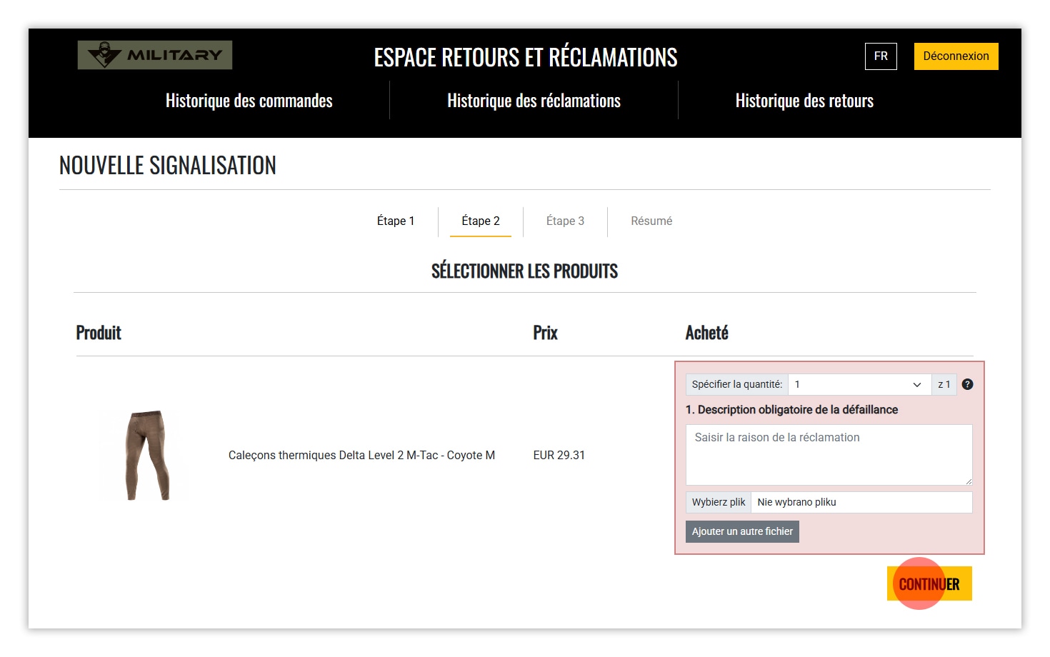 - Vous pouvez vérifier le statut de votre réclamation dans le RMA.