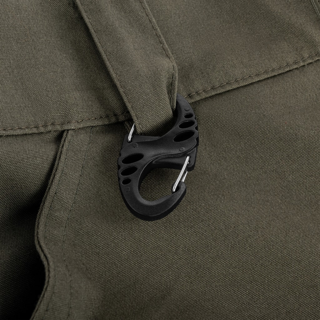 La conception asymétrique de type S permet une fixation facile aux sacs à dos ou pantalons de divers petits accessoires, tels que des torches, des clés ou des gants. Les bras à fermeture automatique avec une grande ouverture simplifient l'attachement d'objets.