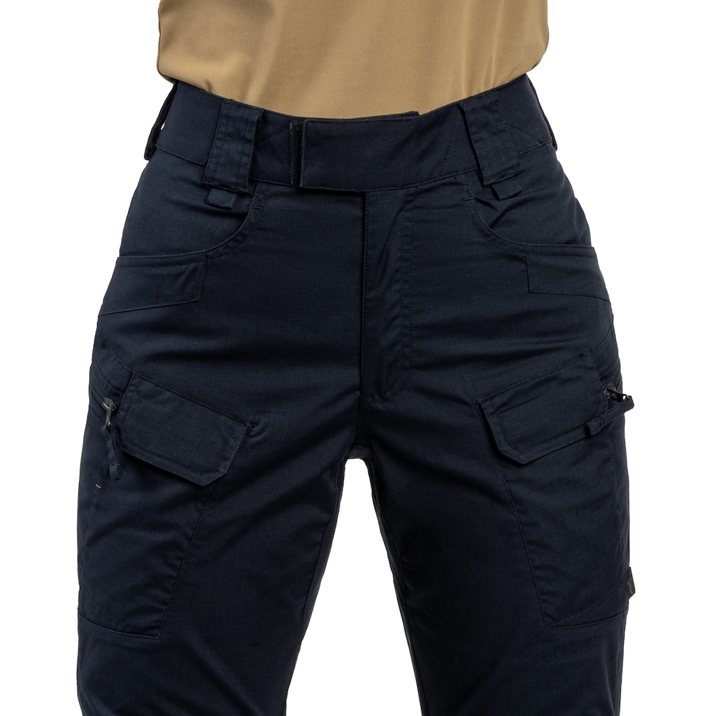 Pantalons tactiques pour femmes UTP (Urban Tactical Pants) en couleur Navy Blue, confectionnés en matière de haute qualité PolyCoton Stretch Rip-Stop avec un grammage de 220 g/m2. Ils se caractérisent par une grande durabilité et résistance aux abrasions et aux déchirures. De nombreuses poches et leur disposition étudiée favorisent l'utilisation non seulement en milieu urbain, mais aussi lors d'activités de plein air.