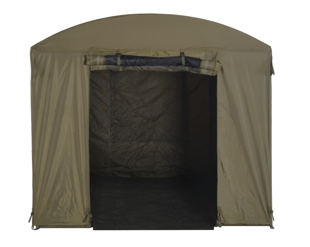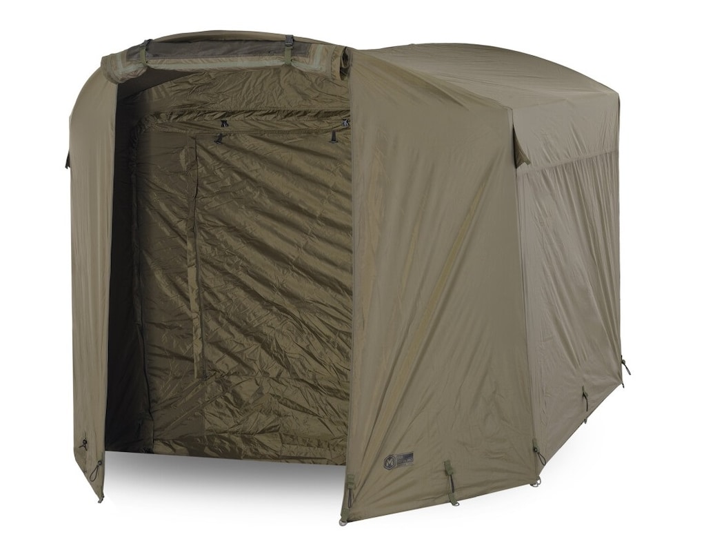 Couverture verte créé comme complément de la tente Base Station MK2 de la marque Mivardi. Le matériau utilisé se caractérise par une imperméabilité de 8000 mm/m2, offrant une protection solide contre de fortes pluies. Une fois montée, elle crée un vaste auvent, augmentant la superficie de la tente et permettant un rangement pratique de l'équipement ou la création d'un espace de travail supplémentaire.