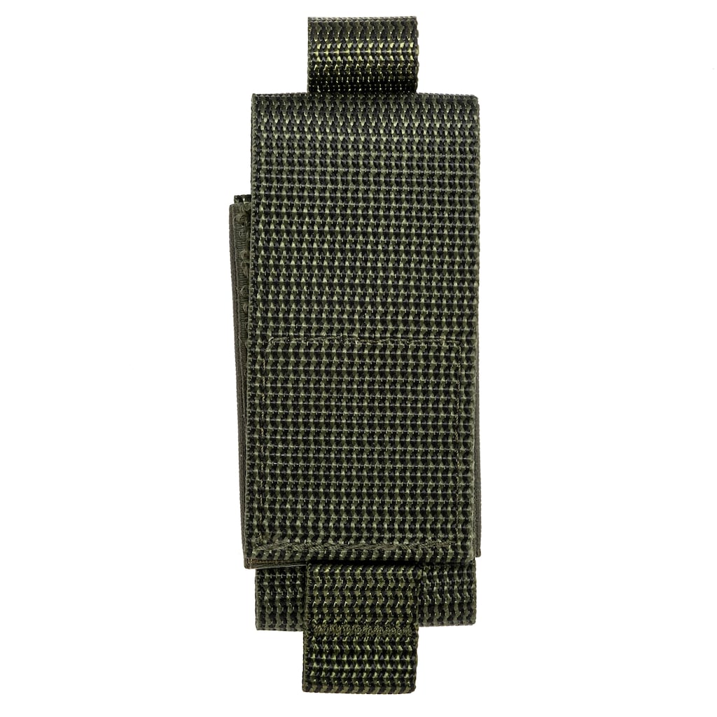 Étui universel de couleur verte, conçu pour une organisation pratique de l'équipement lors d'activités en plein air. Fabriqué en polyester durable, résistant aux dommages. Ce modèle permet de transporter en toute sécurité des multitools, des lampes de poche et d'autres accessoires de taille similaire. La construction adaptée à une fixation à la ceinture assure un confort d'utilisation et un port stable.