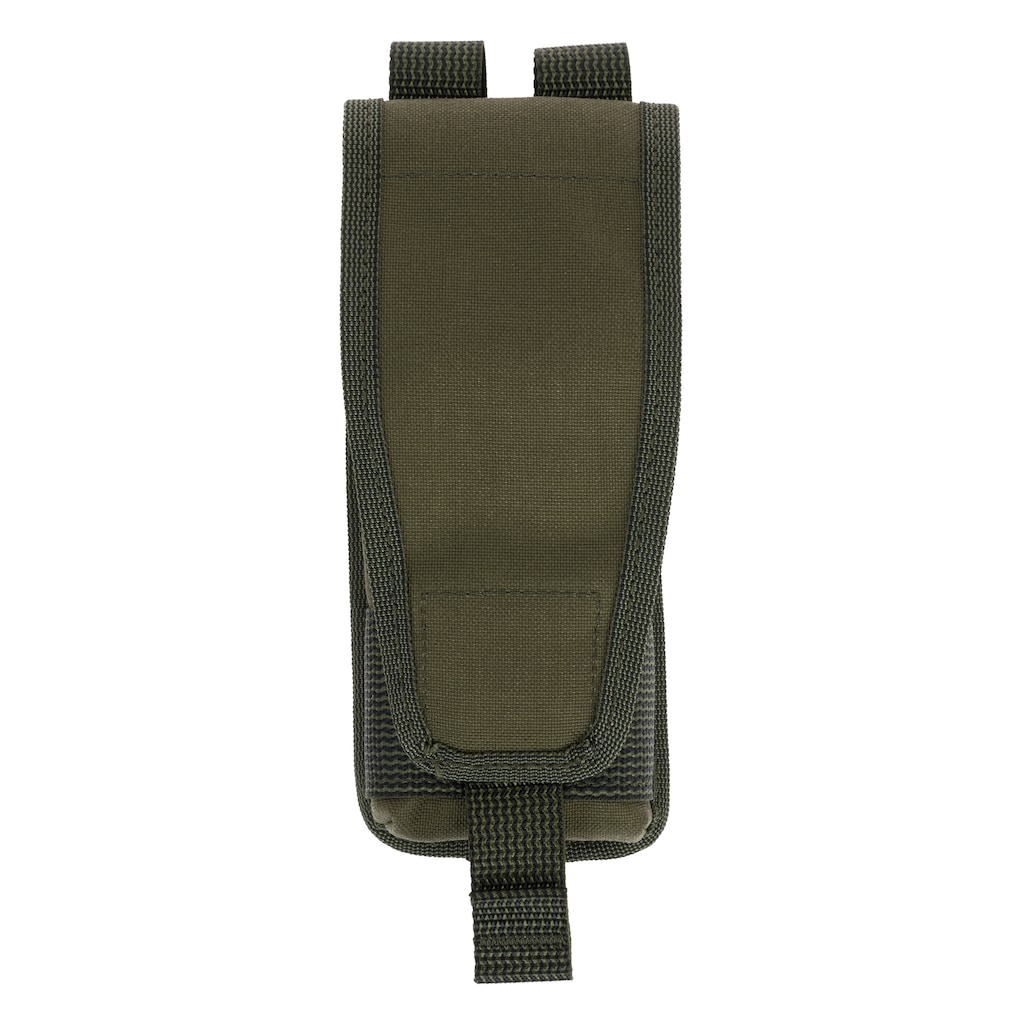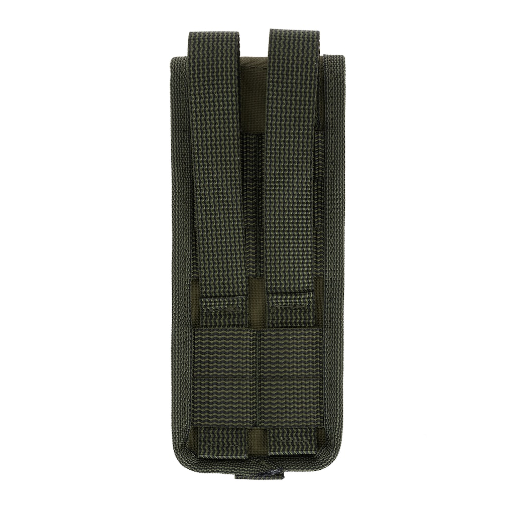 Pochette de transport en couleur Green, conçue pour le transport de chargeurs de calibre 5,56 ou 7,62 mm. Fabriquée en Cordura 1000D résistante, elle se distingue par une grande résistance à l'abrasion et aux dommages mécaniques. Le système de fixation repose sur une double sangle, garantissant la compatibilité avec le système MOLLE.