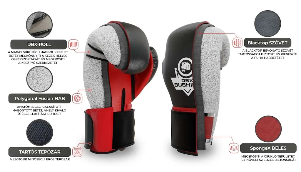 A modell szintetikus bőrből készült, kézzel varrva, amitől magas minőségű a kidolgozása. Belül Blacktop textil került alkalmazásra, ami jelentősen növeli a kesztyűk kopásállóságát. A Polygonal Fusion hab betöltése hatékonyan csökkenti az ütések erősségét, míg a DBX-Roll betét az ujjak körül, nagyon tömörített habból készült, megkönnyíti a kéz ökölbeszorítását és erősíti a kesztyű szerkezetét.