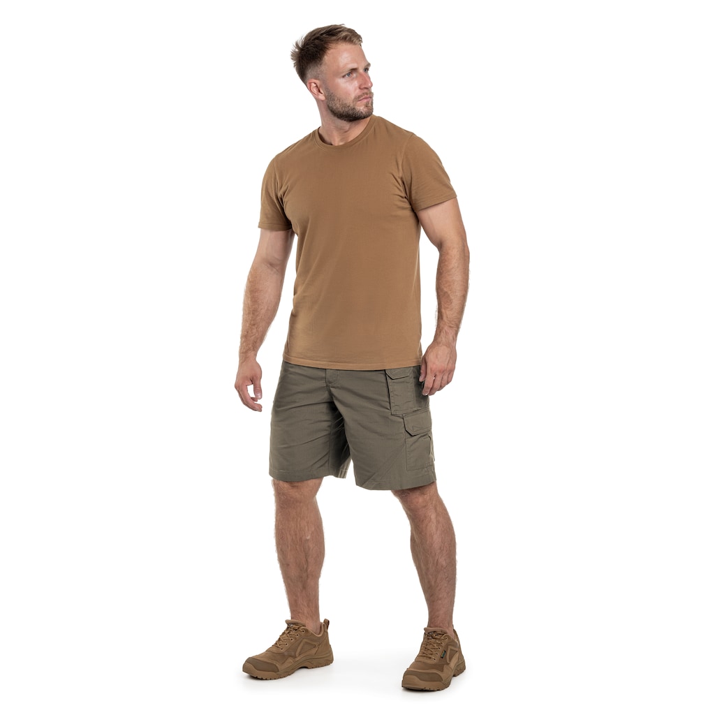 Light tactical shorts in Tundra color made from breathable cotton and tear-resistant polyester with a Rip-Stop weave, known for its excellent durability