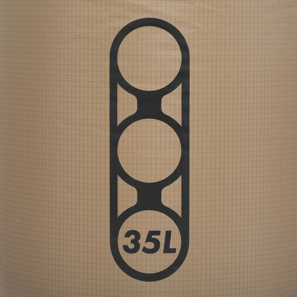 Waterproof bag with a 35-liter capacity, available in Dry Earth color, ideal for carrying clothes, documents, and other personal belongings.
