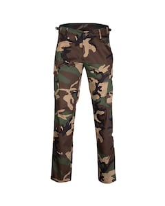Pantalonii Woodland, cunoscuți și ca US Woodland, sunt o alegere verificată pentru fanii supraviețuirii, bushcraftului și activităților în aer liber. Realizați din materiale durabile, adesea întăriți în zonele expuse la frecare, se descurcă excelent în timpul campingului, drumețiilor prin pădure, lucrului pe teren sau jocurilor ASG. Camuflajul forestier caracteristic asigură o camuflare eficientă în mediile împădurite, ceea ce îi face ideali pentru operațiuni în condiții dificile. Numeroasele buzunare – adesea închise cu velcro sau nasturi – permit depozitarea convenabilă a echipamentului necesar.