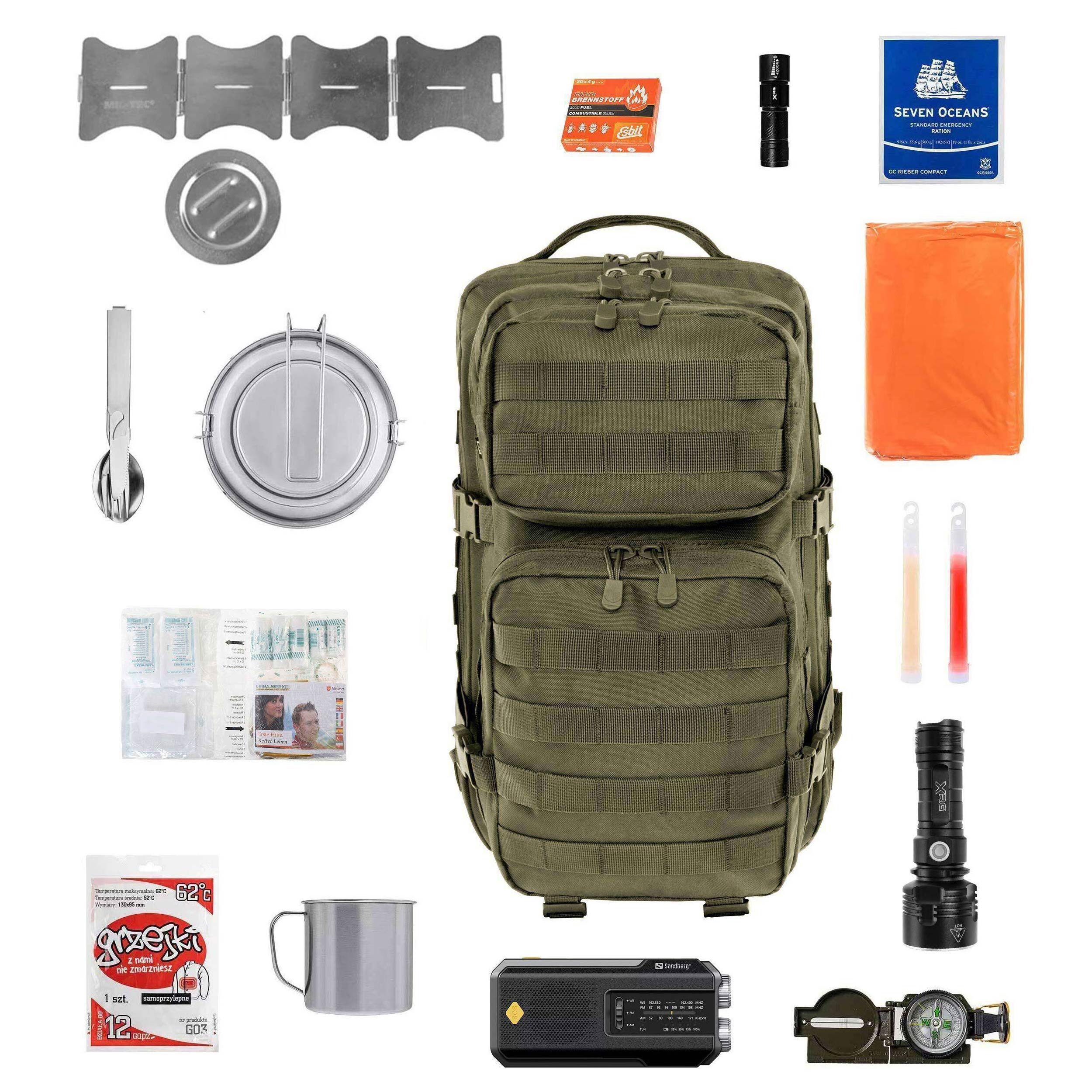 În geanta noastră de salvare ar trebui să ne asigurăm că avem provizii, apă potabilă sau filtre de purificare a apei, îmbrăcăminte, o busolă, protecție împotriva ploii și o sursă de foc și trusă de prim ajutor. Desigur, în funcție de nevoile individuale, trusa ar trebui modificată pentru a se potrivi așteptărilor dumneavoastră. În condițiile noastre climatice, merită să luați în considerare pregătirea unui rucsac de evacuare, mai ales dacă locuiți în zonele inundabile predispuse la inundații. În cazul apei râurilor sau al inundațiilor, o astfel de trusă se poate dovedi a fi singura noastră salvare. Dacă doriți să vă dotați cu un rucsac de evacuare, merită să alegeți un model cu rezistență mecanică ridicată, impermeabil și cu un sistem de transport bun. Cel mai frecvent litraj pentru un rucsac de evacuare este între 30 și 40 de litri. Cu o astfel de capacitate și cu greutatea posibilă a unui astfel de set, merită să alegeți un model cu spatele întărit și cu o centură de șold suplimentară, care va stabiliza rucsacul în timpul mersului și va ușura presiunea asupra coloanei vertebrale. În ceea ce privește materialul de construcție, aici produsele fabricate din Cordura sunt foarte lăudate. Producători precum Wisport, Helikon-Tex, Texar sau Pentagon au modele care vor funcționa bine ca sistem de transport pentru trusa noastră de urgență.