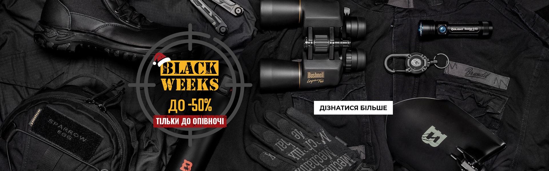Ми розпочинаємо найбільшу акцію знижок у році. Під час Black Weeks на MILITARY.EU ми знизили ціни на тисячі товарів брендів, які цінують користувачі військового, туристичного та тактичного спорядження.