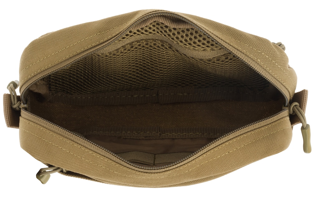 Сумку оснащено основним відділенням з 2 перегородками (одна з застібкою, інша відкрита) та еластичними петлями для кріплення, наприклад, ліхтарика чи мультитула. Спереду є кишеня з блискавкою, що дозволяє швидкий доступ до часто використовуваних аксесуарів. Додатково, ззаду є плоска кишеня для дрібниць.