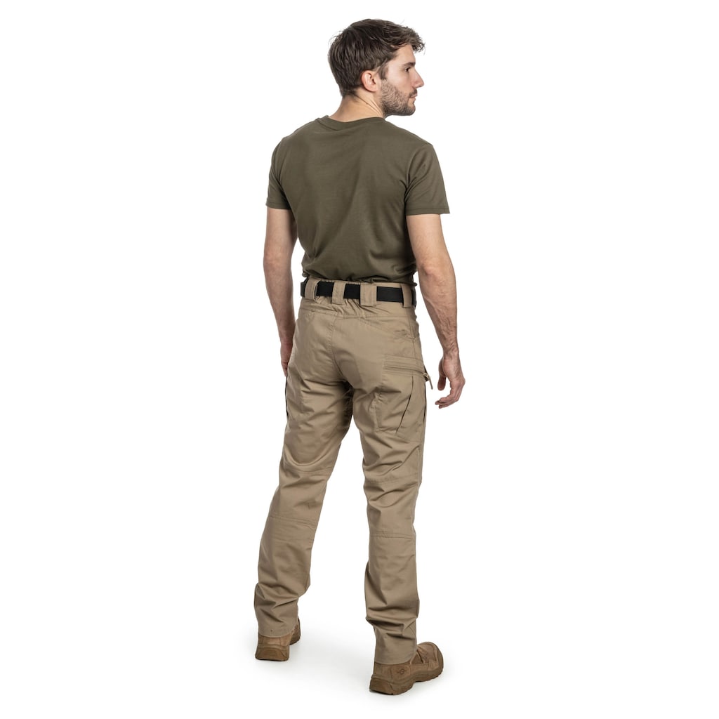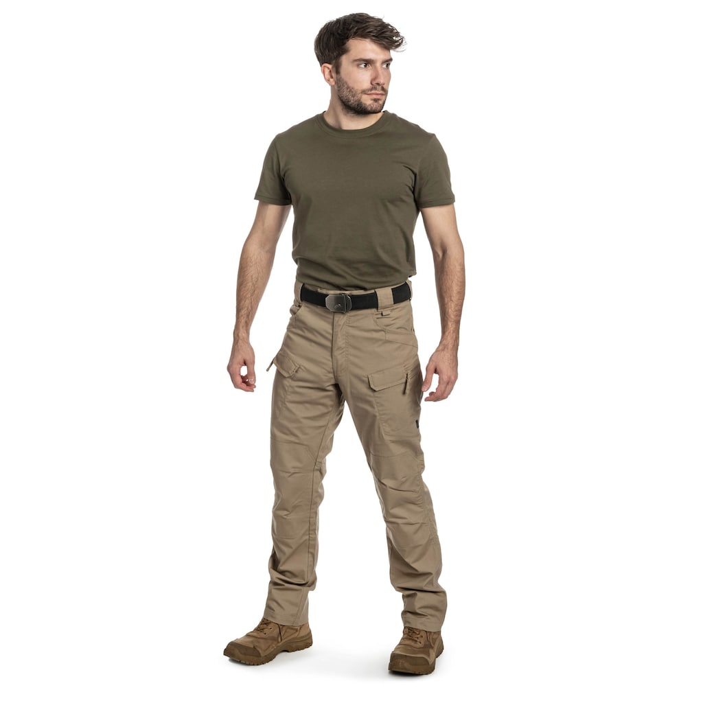 Коричневі тактичні штани UTP (Urban Tactical Pants) пошиті з високоякісної еластичної тканини PolyCotton Stretch Rip-Stop щільністю 220 г/м2. Тканина характеризується високою стійкістю до стирання та розривів, що забезпечує тривале використання. Завдяки продуманому розташуванню численних кишень, штани підходять як для міського середовища, так і для активного відпочинку на свіжому повітрі.